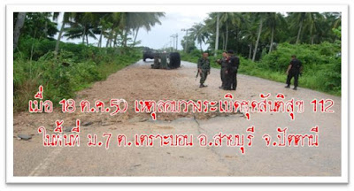 เหตุการณ์ที่ 4 เมื่อ 18 ตุลาคม 2550 ลอบวางระเบิดรถยนต์ ชุดสันติสุข 112 ม.7 ตำบลเตราะบอนอำเภอสายบุรี จังหวัดปัตตานี